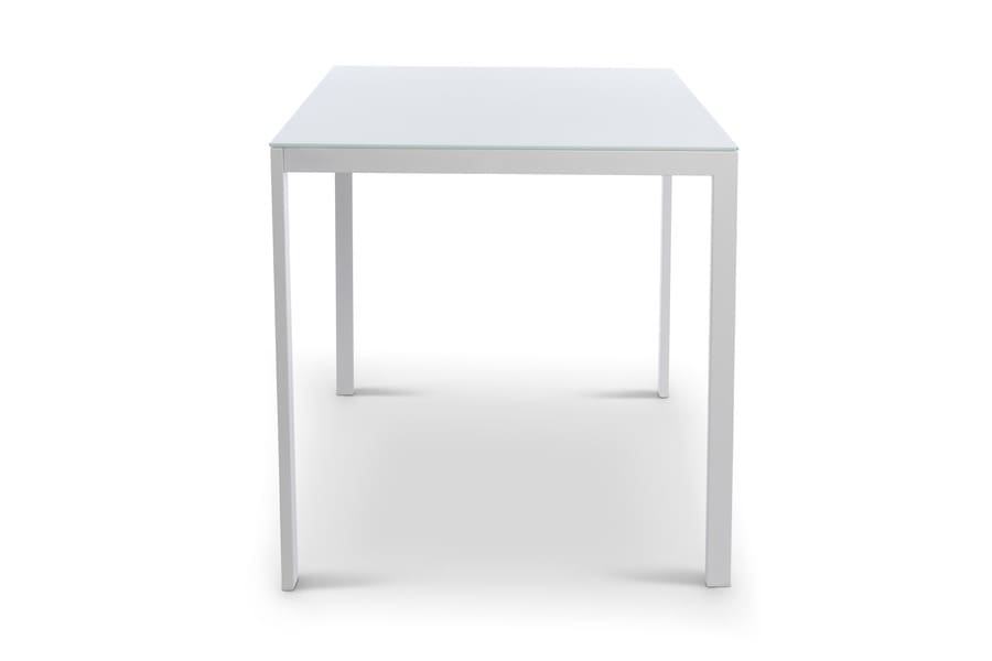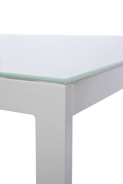 CB75751-W (SQUA Dining Table-Square/ Mesa de comedor cuadrada,,Materials: flat tube 40*20*T1.0mm, Tempered glass. patas y borde metalico, superficie de cristal atemperado. Color Blanco