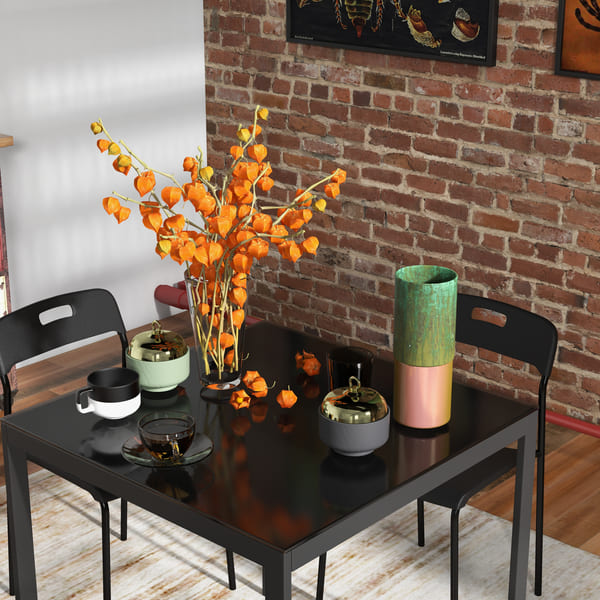 Materials: flat tube 40*20*T1.0mm, Tempered glass/ patas y borde metalico, superficie de cristal atemperado. Color negro