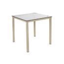 Mesa apilable. Estructura de aluminio lacada con uniones de poliamida con fibra de vidrio. Reguladores de altura. Tamaño tablero 80x 80.